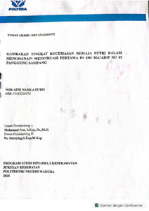 Nor Afni Nabila Putri, 3312201072 (2025) Gambaran Tingkat Kecemasan Remaja Putri Dalam Menghadapi Menstruasi Pertama Di SDI Ma'arif NU Panggung Sampang. Diploma thesis, Politeknik Negeri Madura.